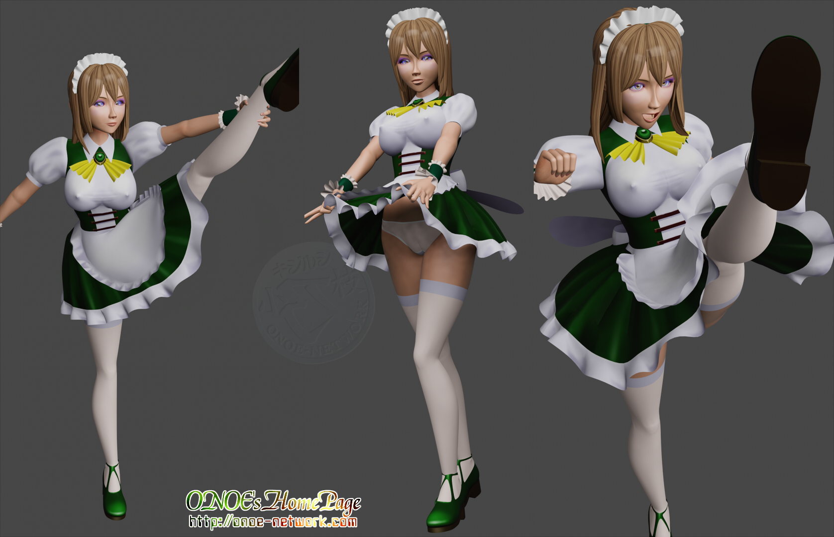 それでもなんとか一通りのモデリングを済ませて、ボーンとウエイトの設定をしてポーズを付けたものとなります。