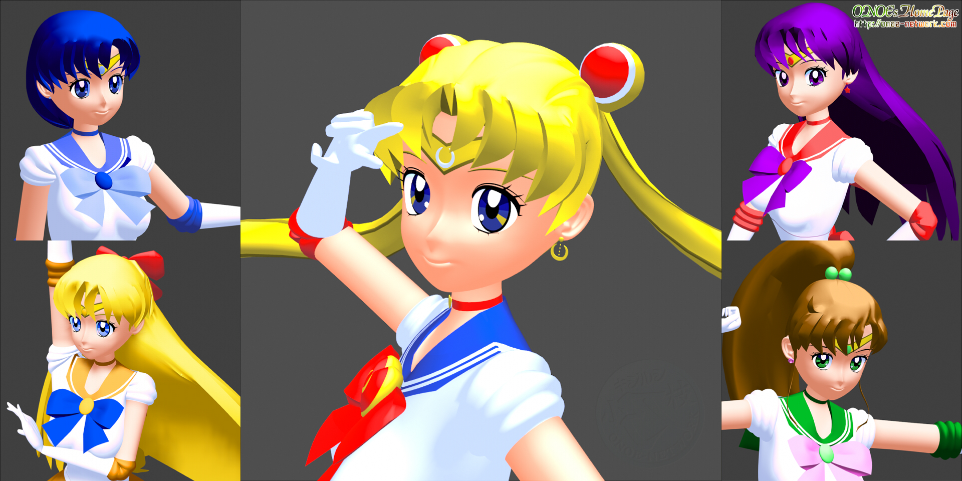 3作目はUnity(ゲームエンジンです)に持って行って動かすことを考慮して、超ローポリでのモデリングで「セーラームーン」を作りました。