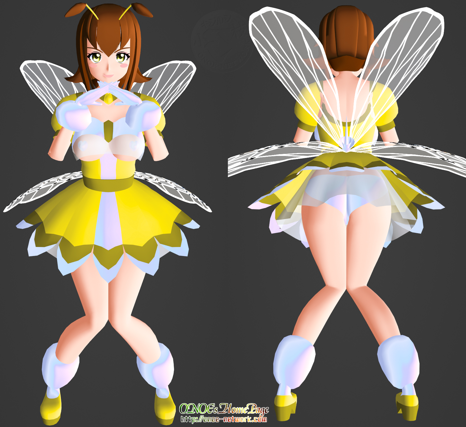 翅(はね)のシースルーなテクスチャとか、も少し工夫したかったのですが、とりあえずこんな感じという事で、時間があったら直したいです。