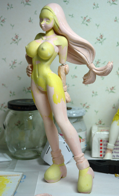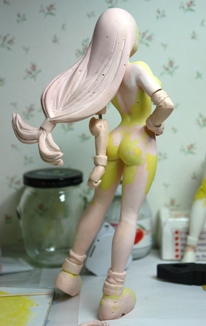 キャラのイメージとして、やはりむっちりとした印象があるので、一度盛れるだけ盛りつけてボリュームを出して具合いをみてみたという次第です。