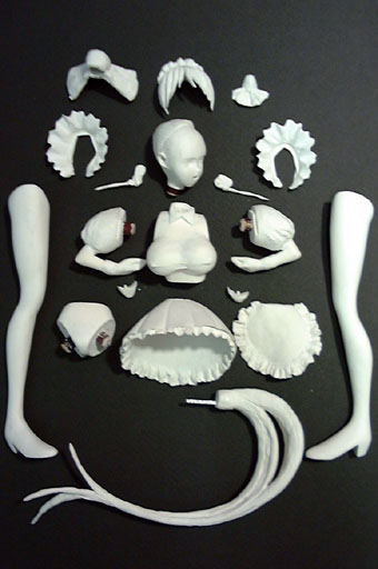あとは、これらのパーツを1つ1つ仕上げていけば完成となります。が、現在の粘土のままでは強度に問題があるパーツ(髪の毛)等は、他の素材で造りなす必要がありそうです。