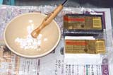 それがある程度の固まりとなったらビニール袋に入れて足で踏む事でさらに捏ねていきました。(まるでうどん作りのような・・・)