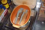 図の、グラタン皿に引いていた木の板が真っ黒に焦げてしまい、部屋中が焦げ臭くなってしまったのでした・・・