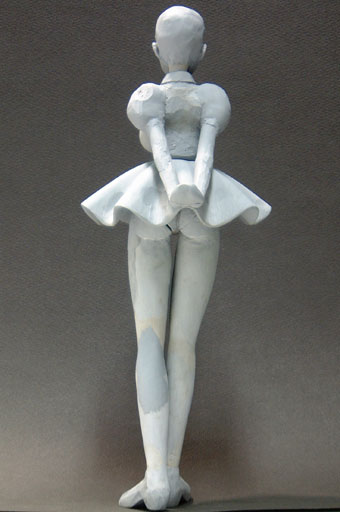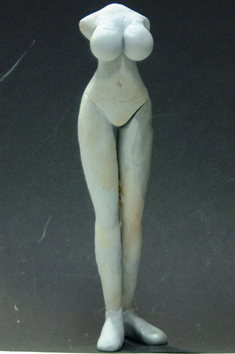 次に、足のシルエットを直すべく、おもに内股を中心に粘土を盛って形を整えた所です。