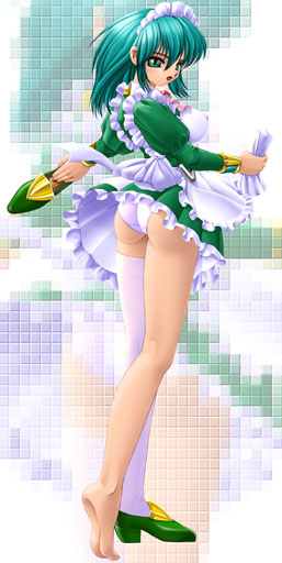 そしてやっと、着彩作業にとりかかったのですが、このメイド服のミドリ色系というのはナカナカ勝手が掴めず、色作りには随分と手古摺ってしまいました・・・(^^);