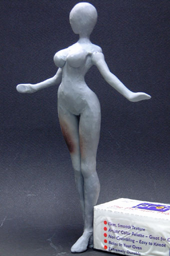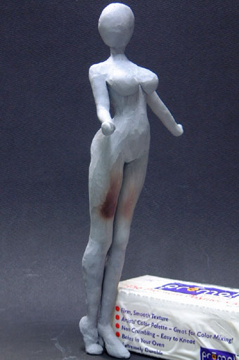 で、原型の方は毎度の手順どうり、芯状の骨組みに少しづつねんどを「盛りつけては焼き〜」を繰り返して、形を作っています。