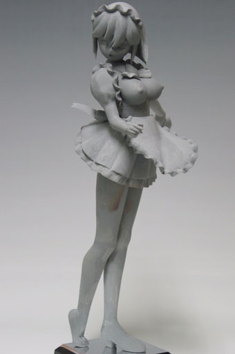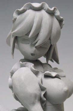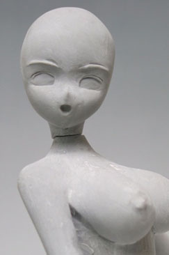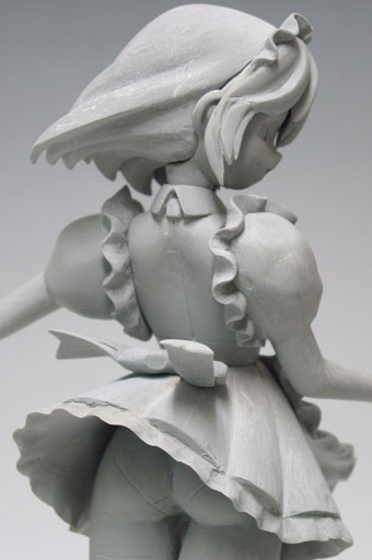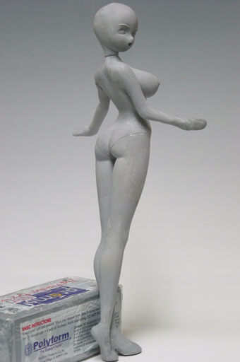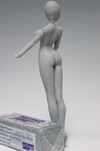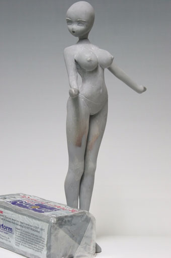 今回は、右足の曲がりを訂正したり、クビの角度を直したりしたあと、腰部・肩部を分割して、スカートや袖などを作りました。